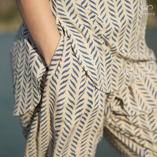 "Kosmoh 100% Organic Cotton Coord Set - Midnight Blue- Handblock printing ( Set of top & pants ) "