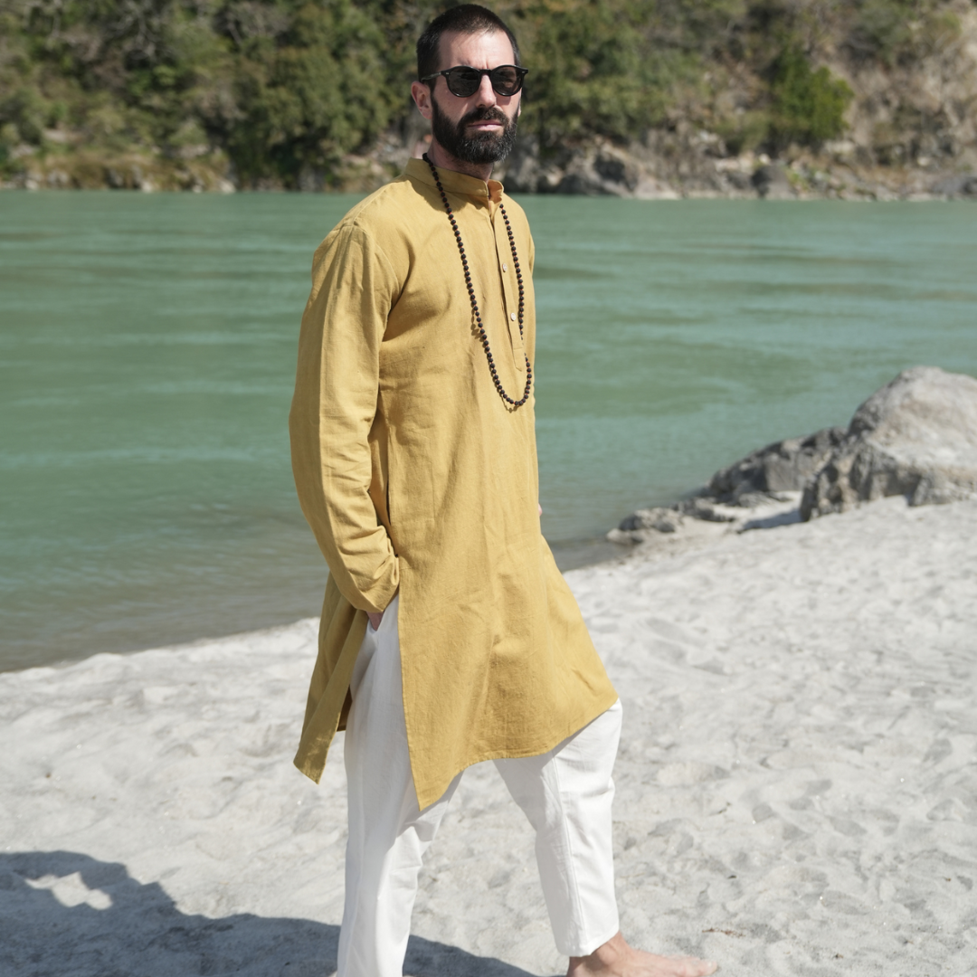Khadi's breathability and natural texture make it an excellent choice for yoga wear. A Yoga Kurta made from Khadi would not only be comfortable but also align with the principles of sustainability and mindfulness that are central to yoga practice. It would be great for practitioners looking for clothing that allows freedom of movement while also being eco-friendly.