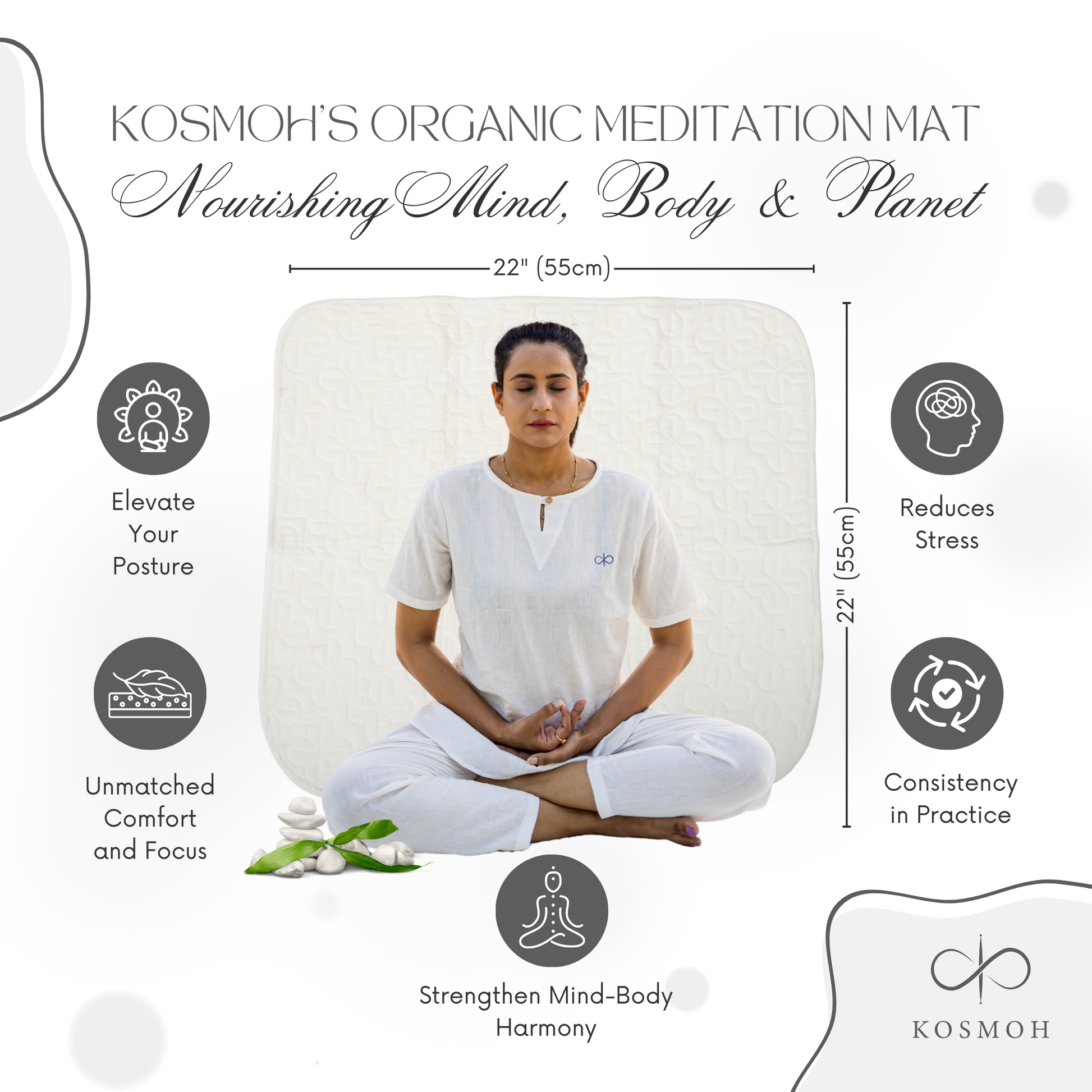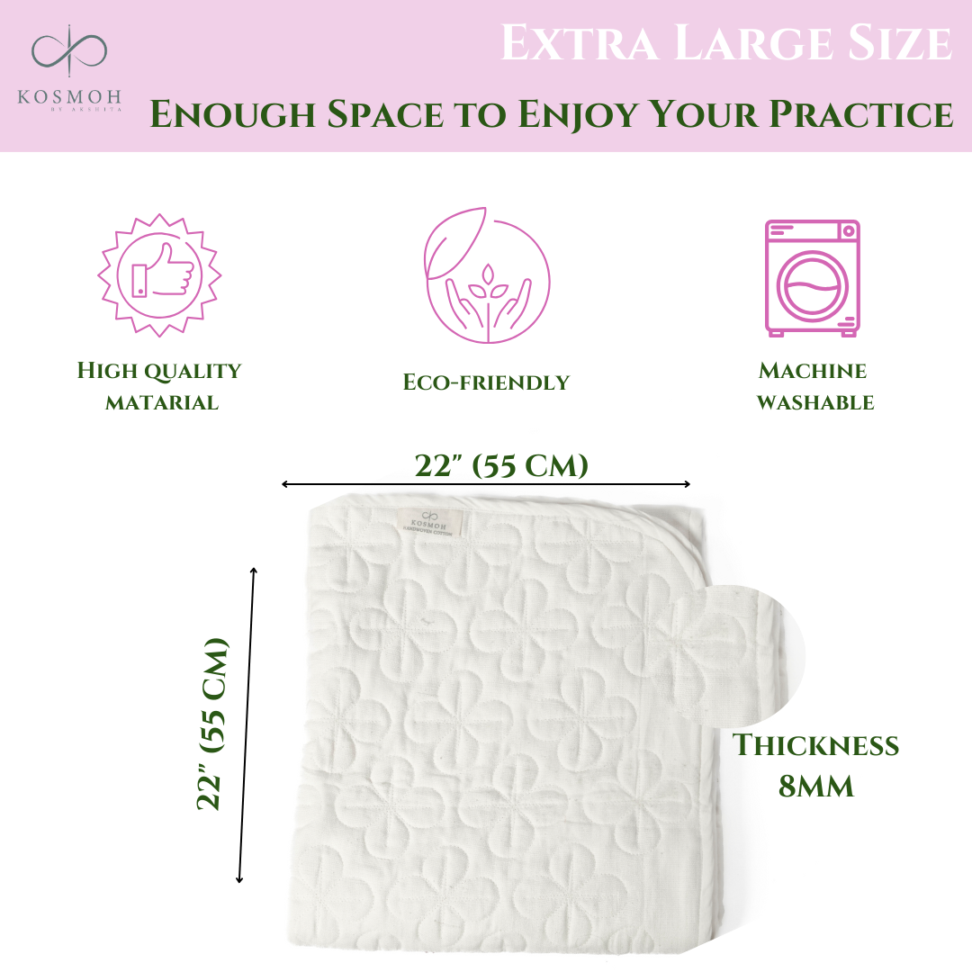 100% Kosmoh Organic Cotton Meditation Mat - WHITE