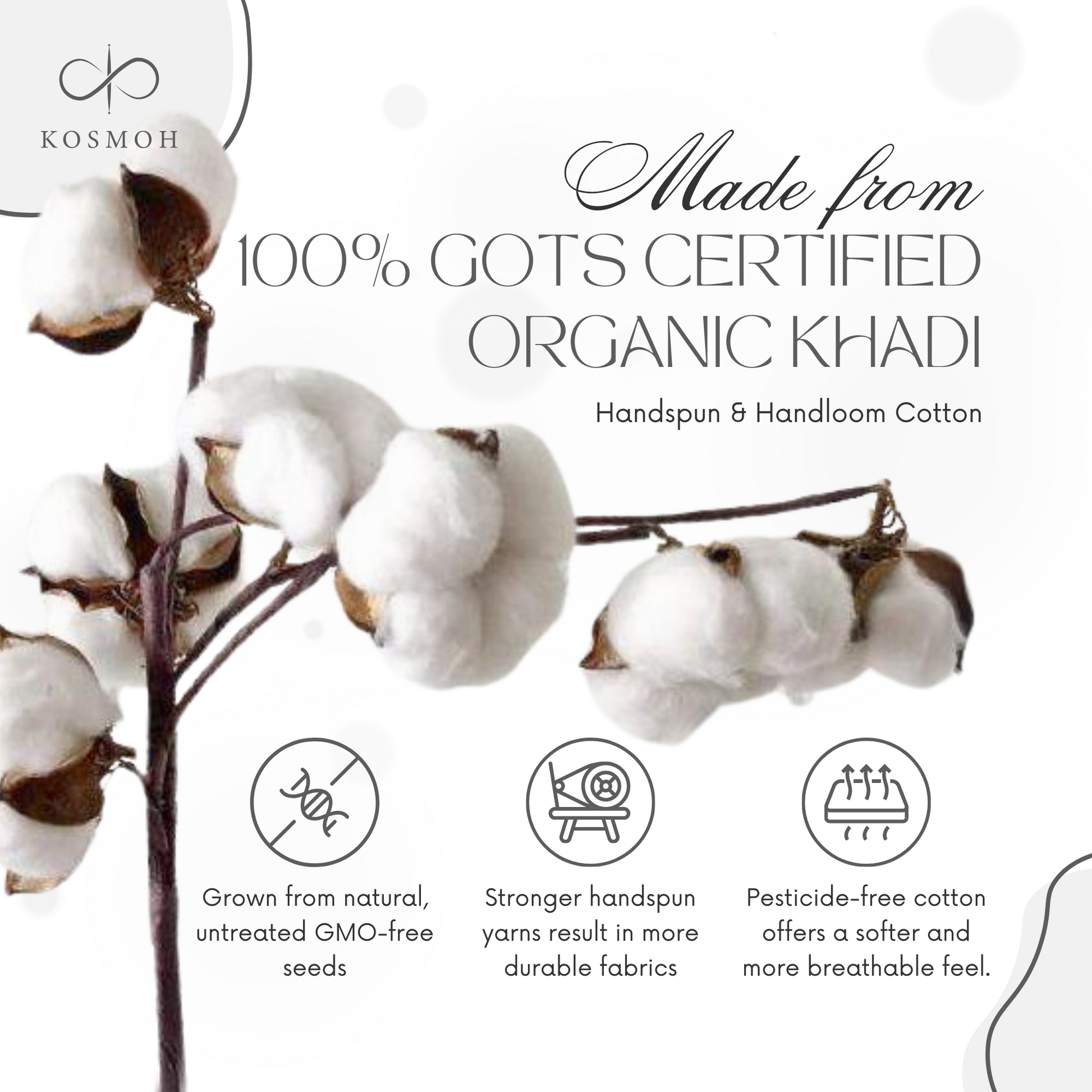 Premium Organic Khadi Cotton: Immerse yourself in the pure comfort of our meditation mat, crafted from high-quality organic khadi cotton. The natural fibers provide a soft and breathable surface, ensuring a comfortable foundation for your meditation, yoga, Pilates, and fitness routines.