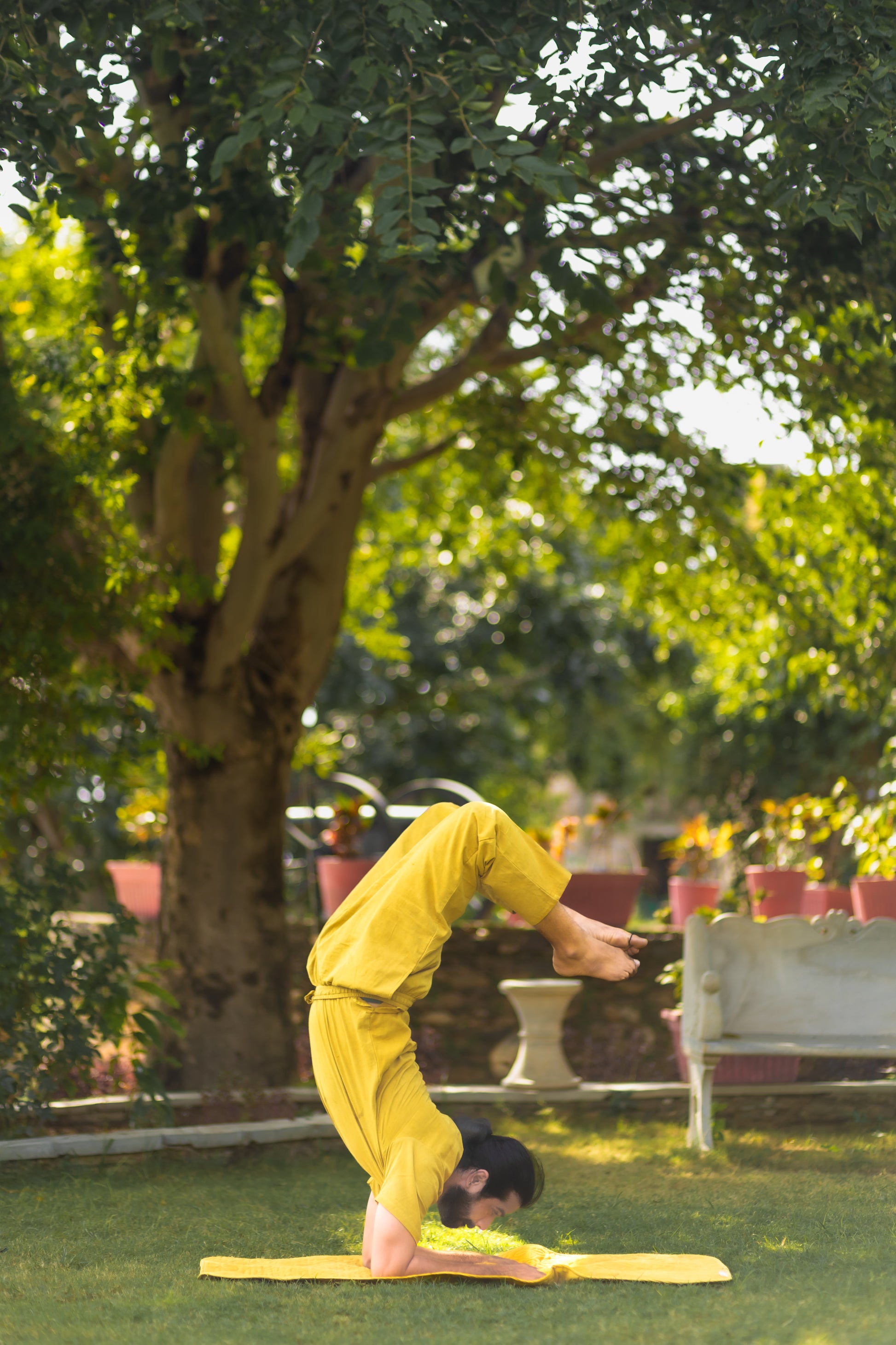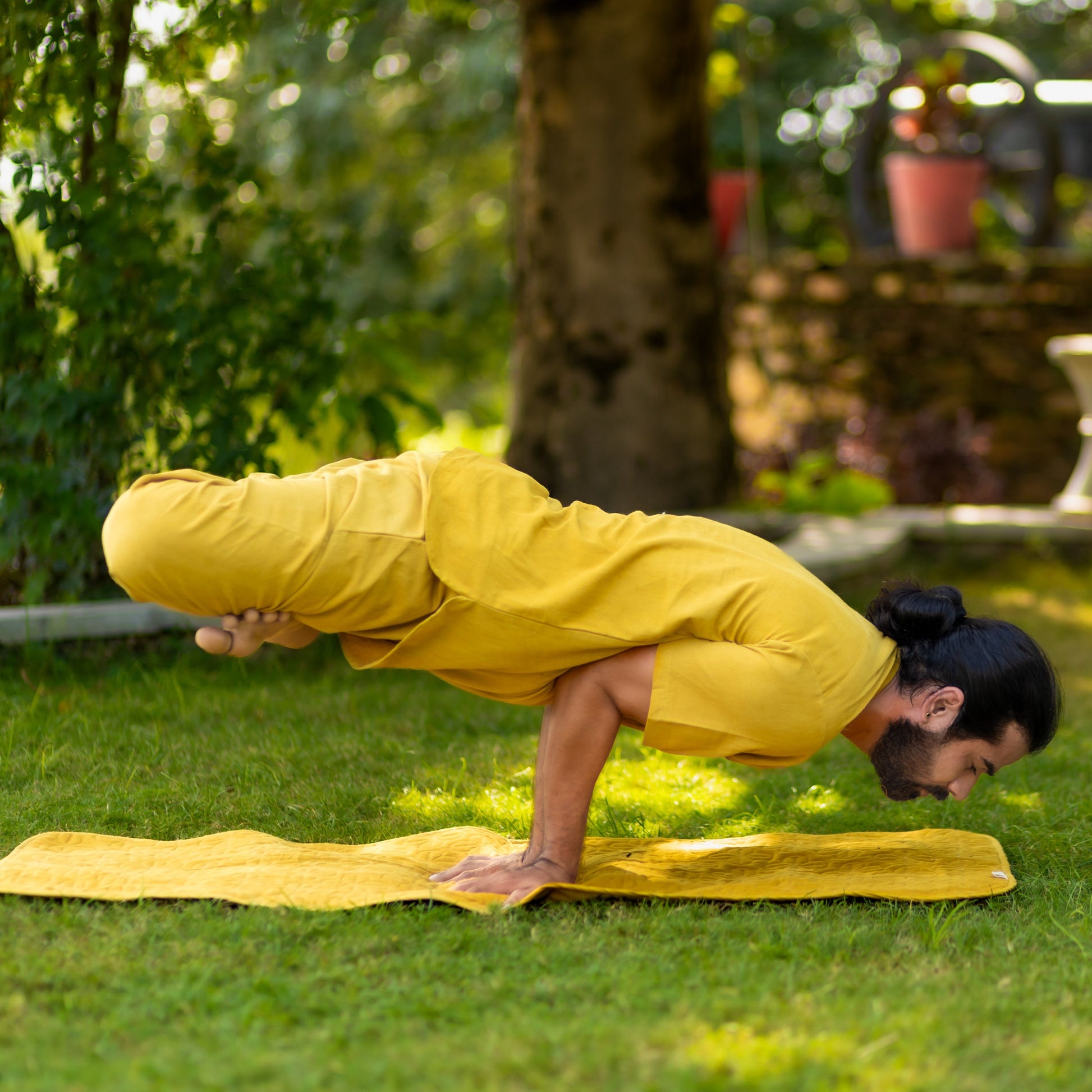 "Kosmoh 100% Organic KHADI Yoga Coord Set - Amber Yellow ( Set of top & yoga pants ) - Male "