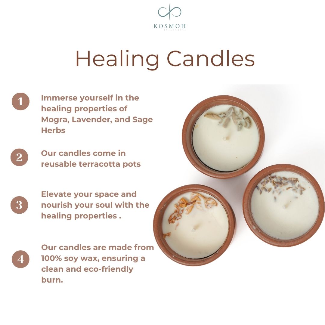 Elevate Your Space, Elevate Your Well-being: Kosmoh's Healing Terracotta Candles transcend the ordinary. They're invitations to a sanctuary, reflections of your commitment to mindful choices. Illuminate your space, nurture your soul, and let the flicker of each flame tell a story of holistic living.