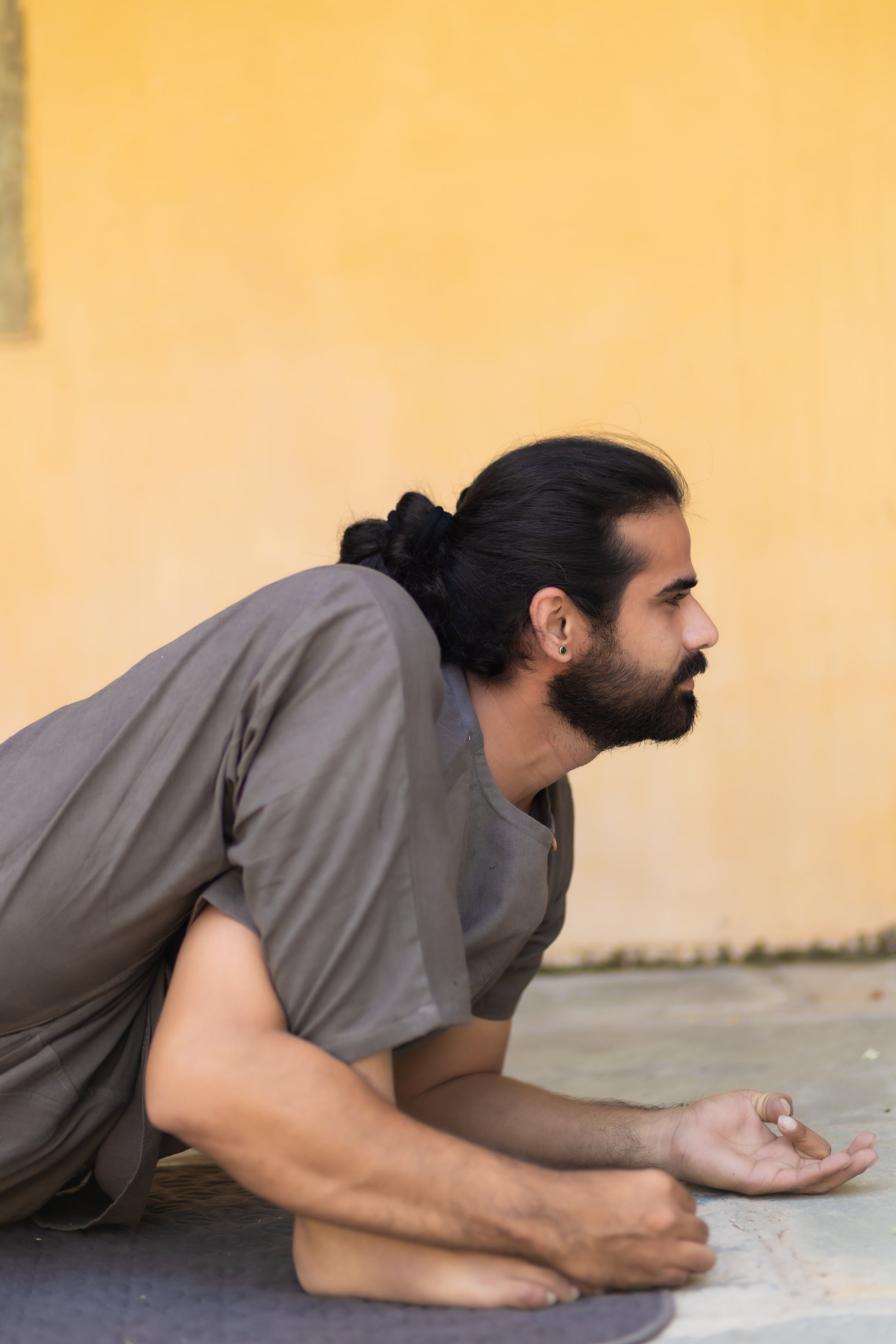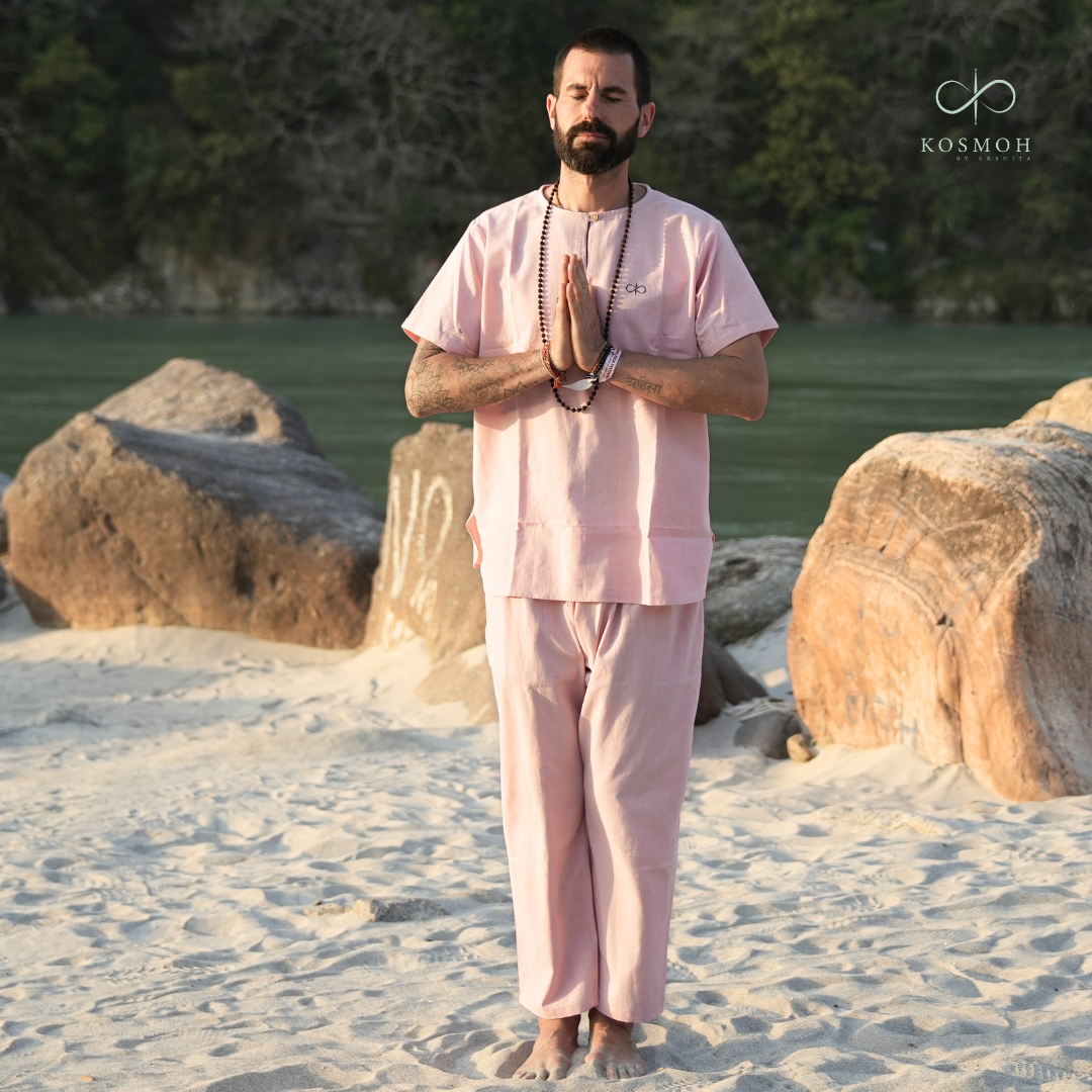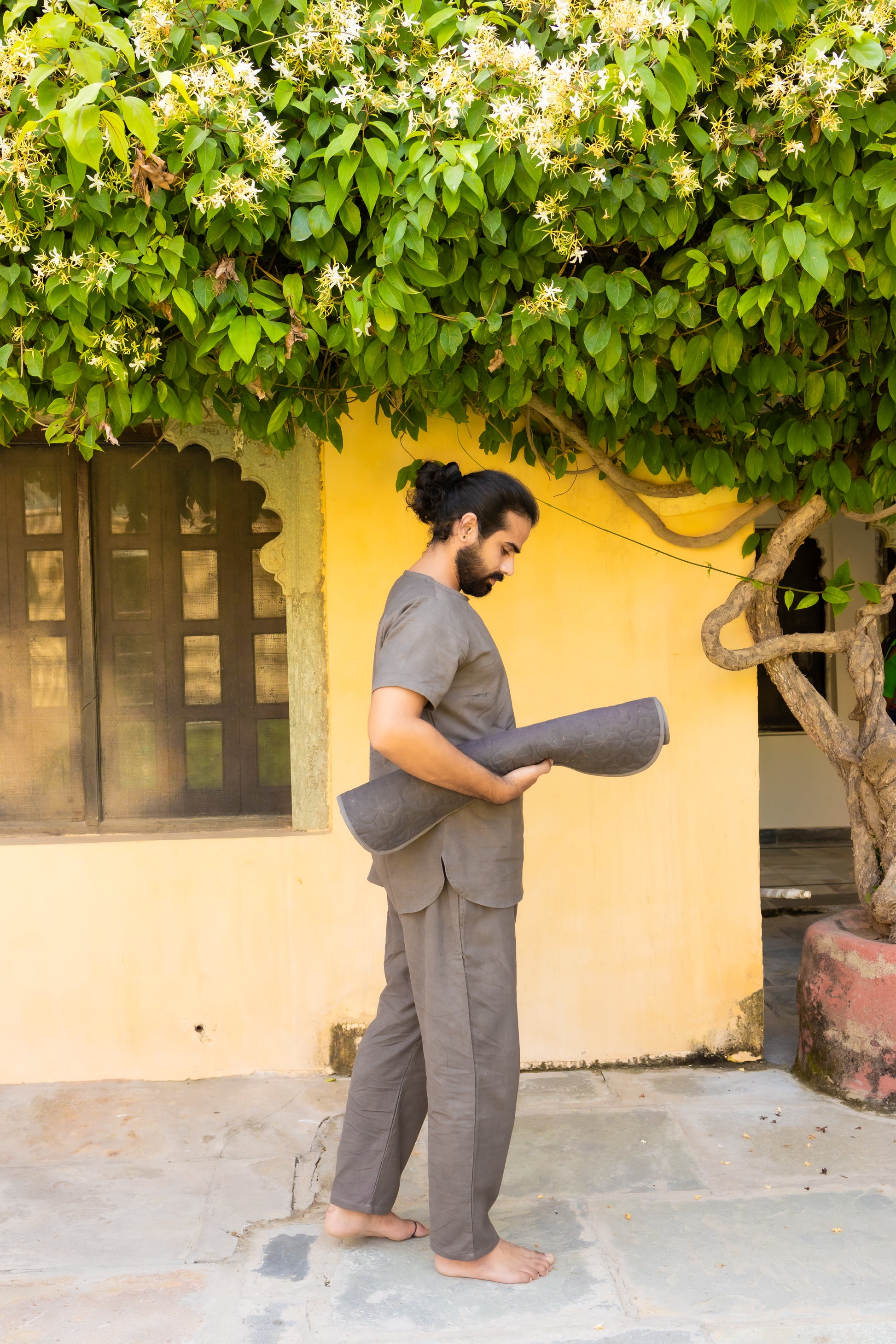 "Kosmoh 100% Organic KHADI Yoga Coord Set - Moonlit Gray ( Set of top & yoga pants ) - Male "