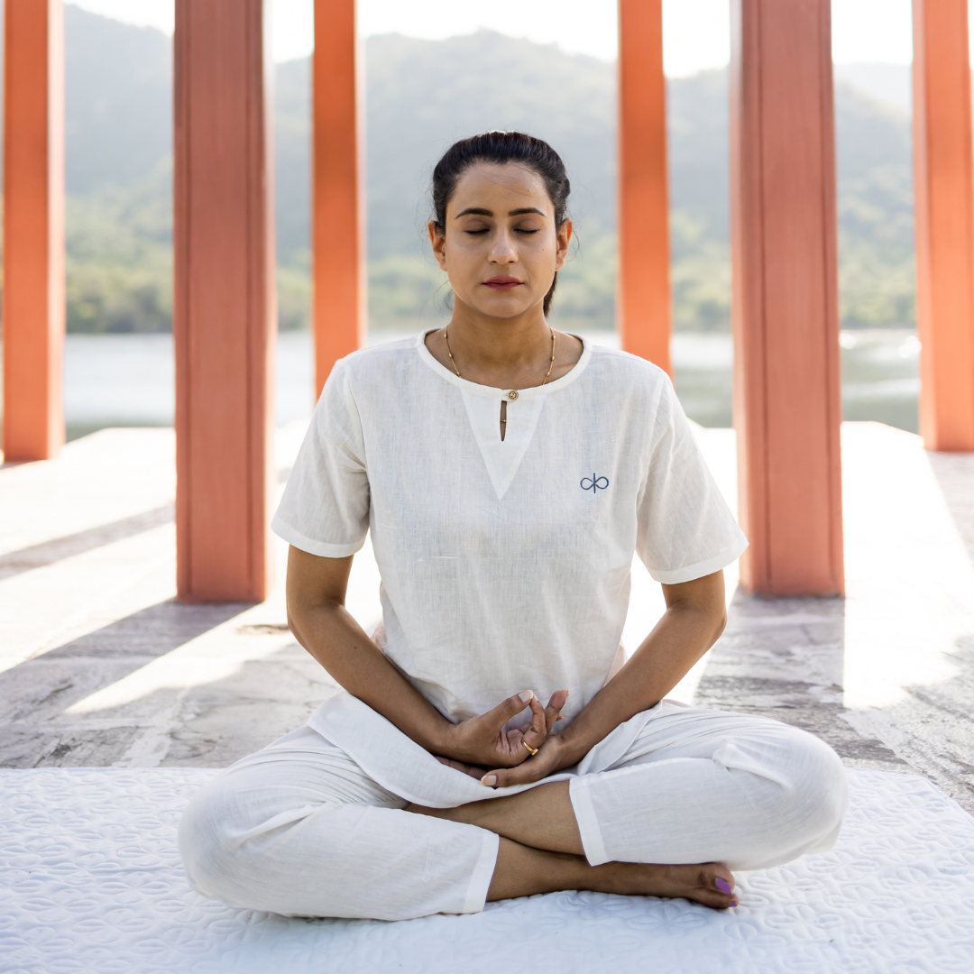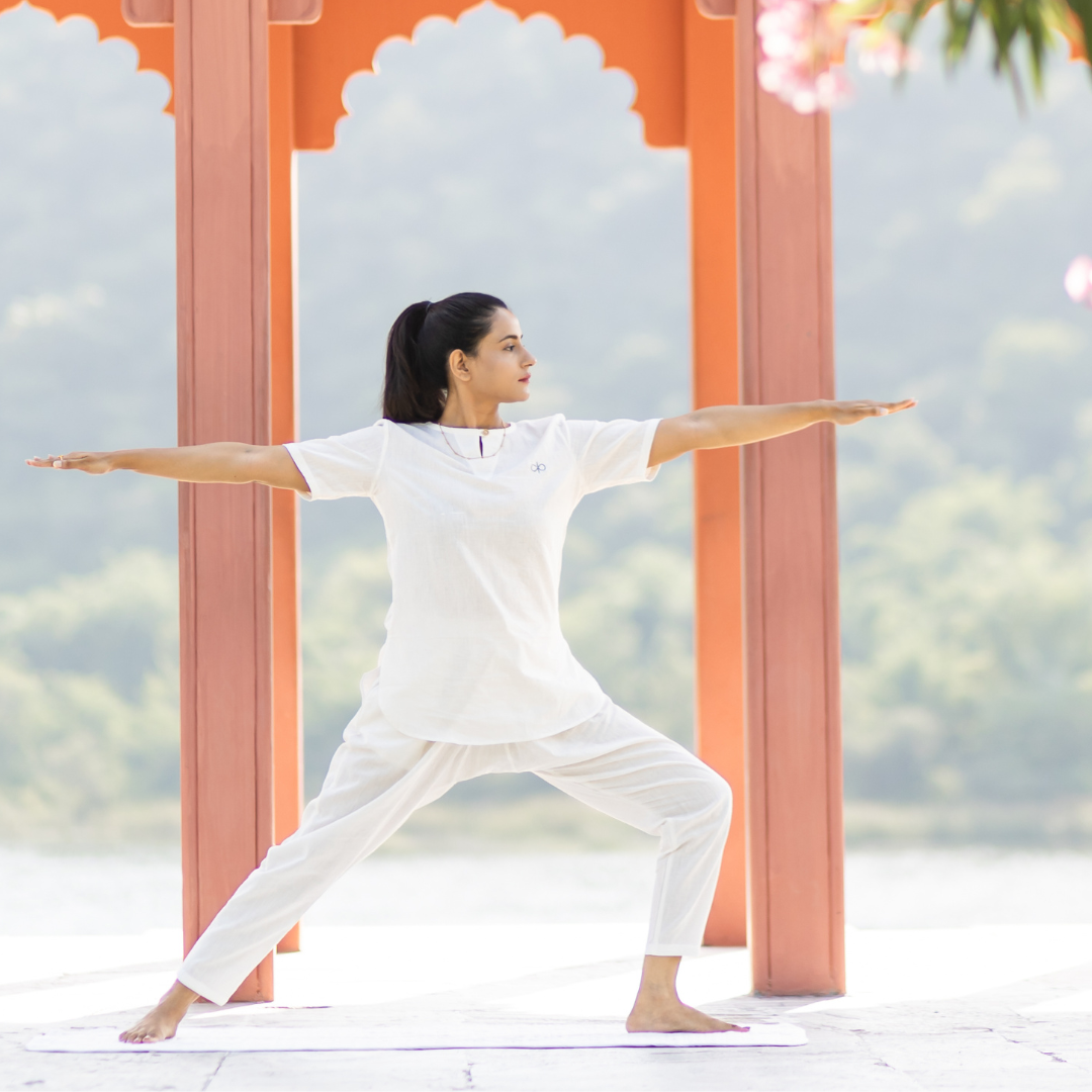"Kosmoh 100% Organic KHADI Yoga Coord Set - Serene White ( Set of top & yoga pants ) - Female "