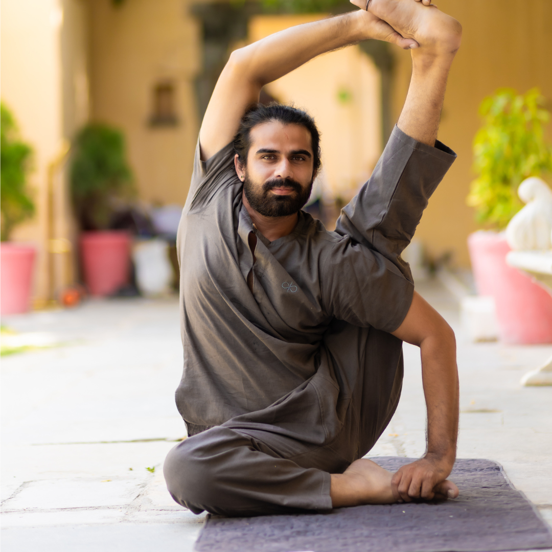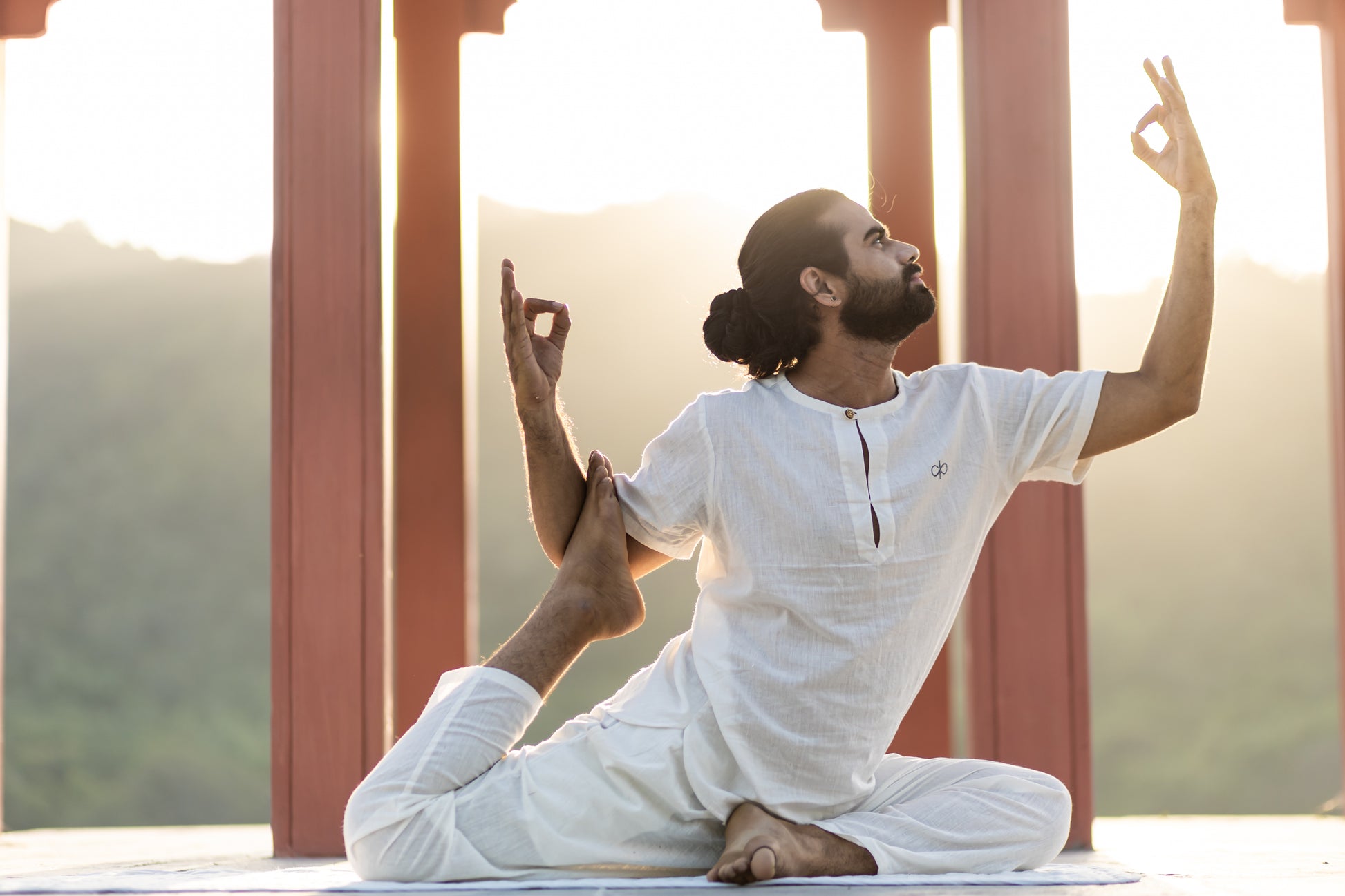 "Kosmoh 100% Organic KHADI Yoga Coord Set - Serene White ( Set of top & yoga pants ) - Male "