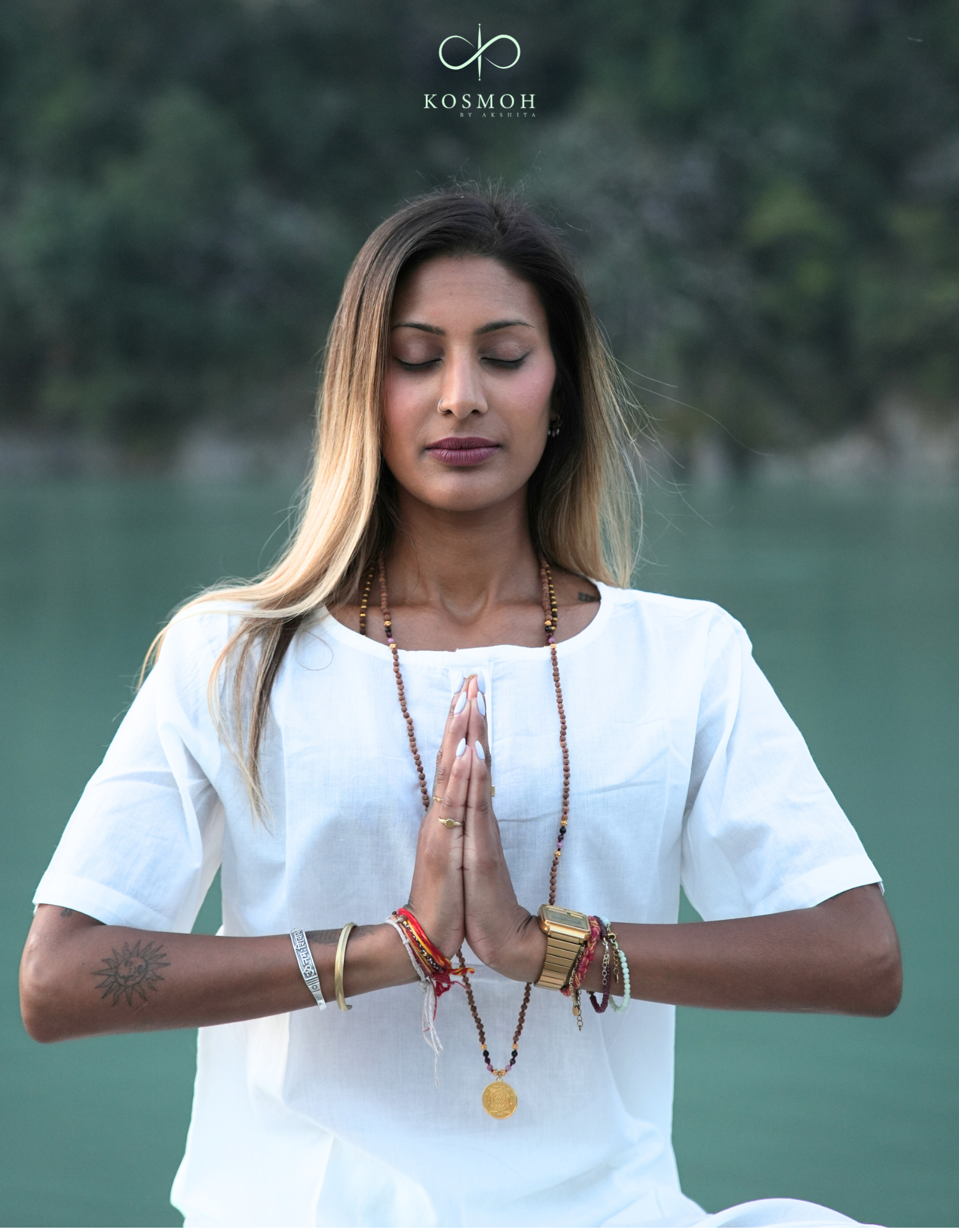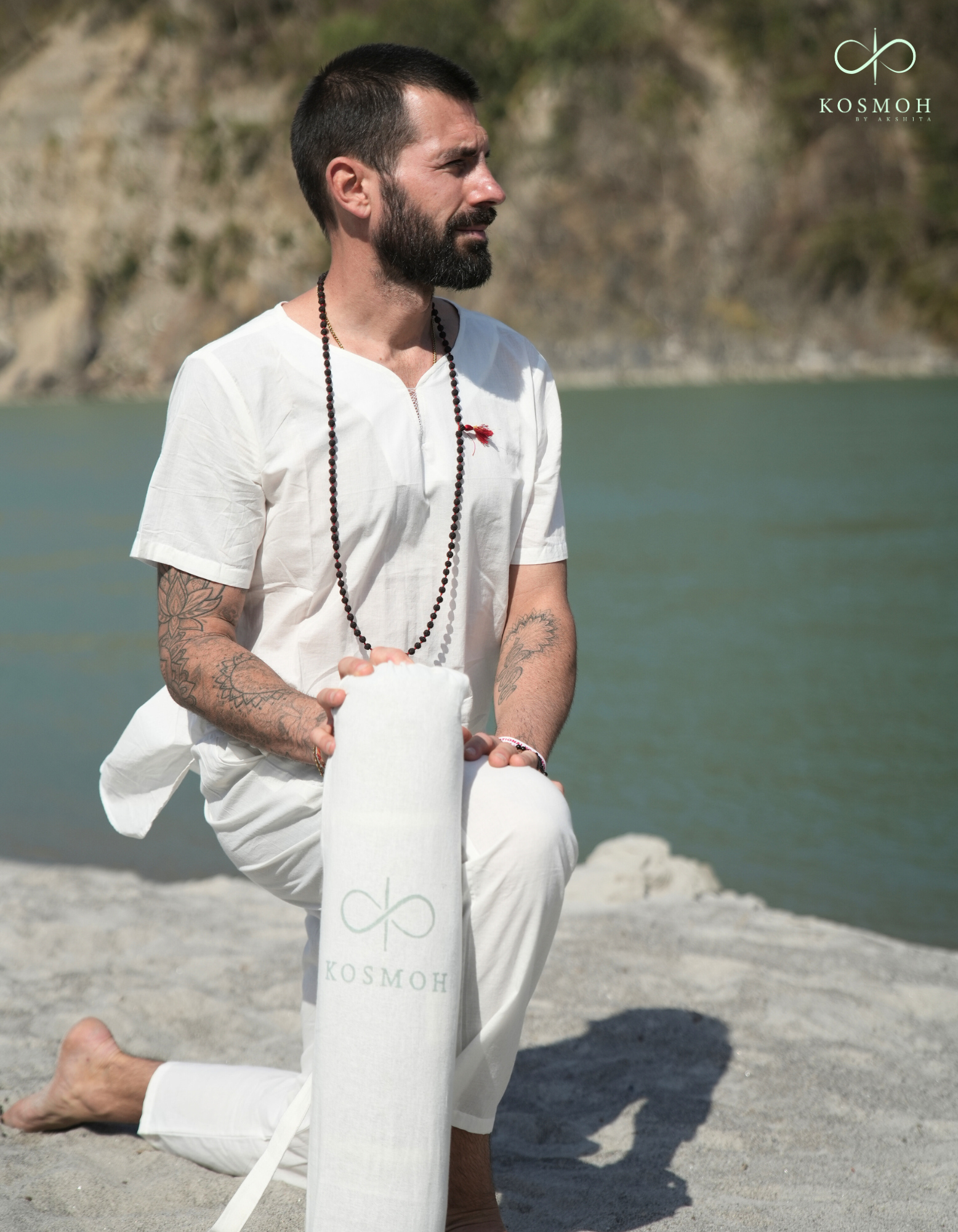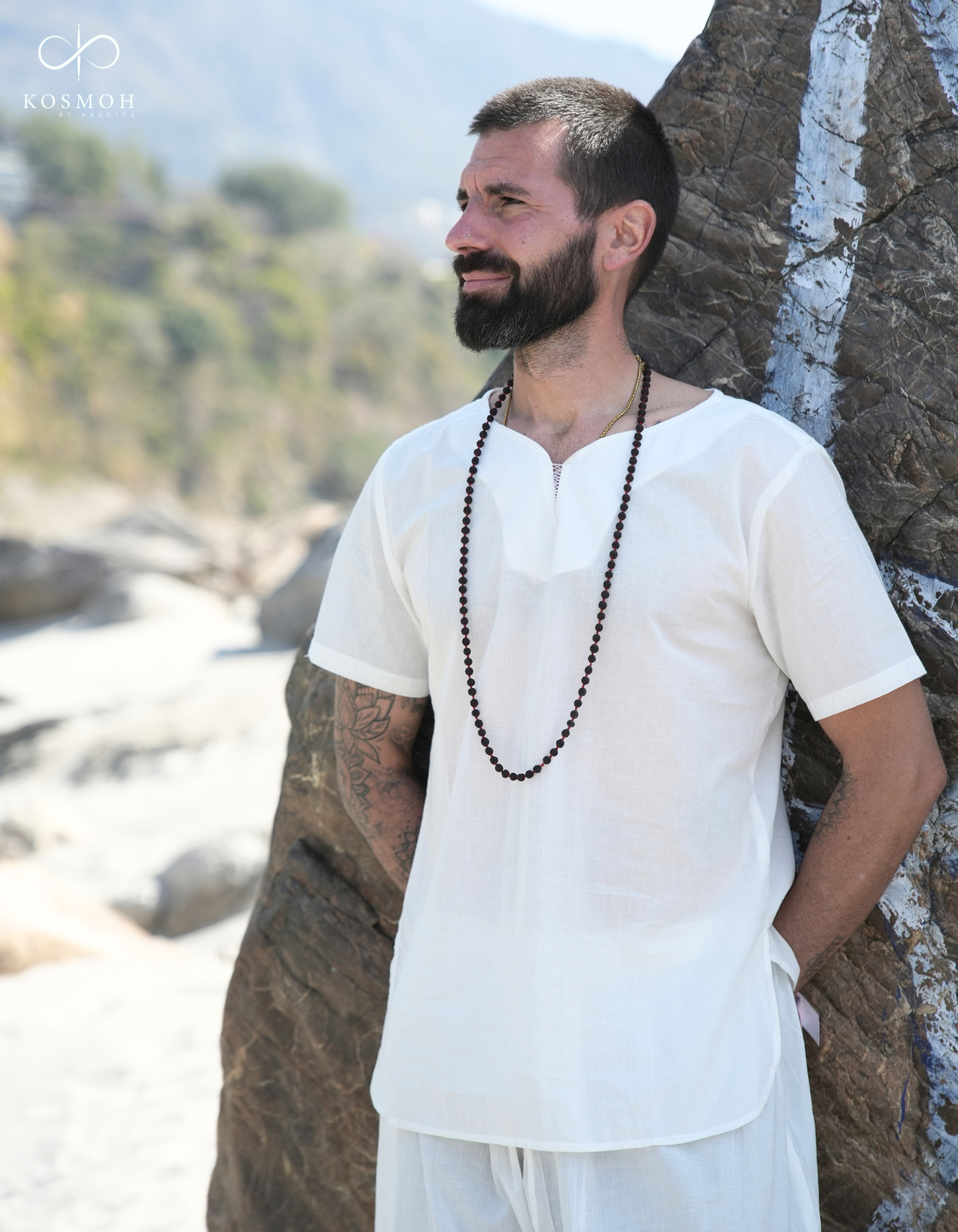 Kosmoh 100% Organic Mulmul Cotton Coord Set Unisex-Serene white (Keyhole neck design) ( Set of top & pants )