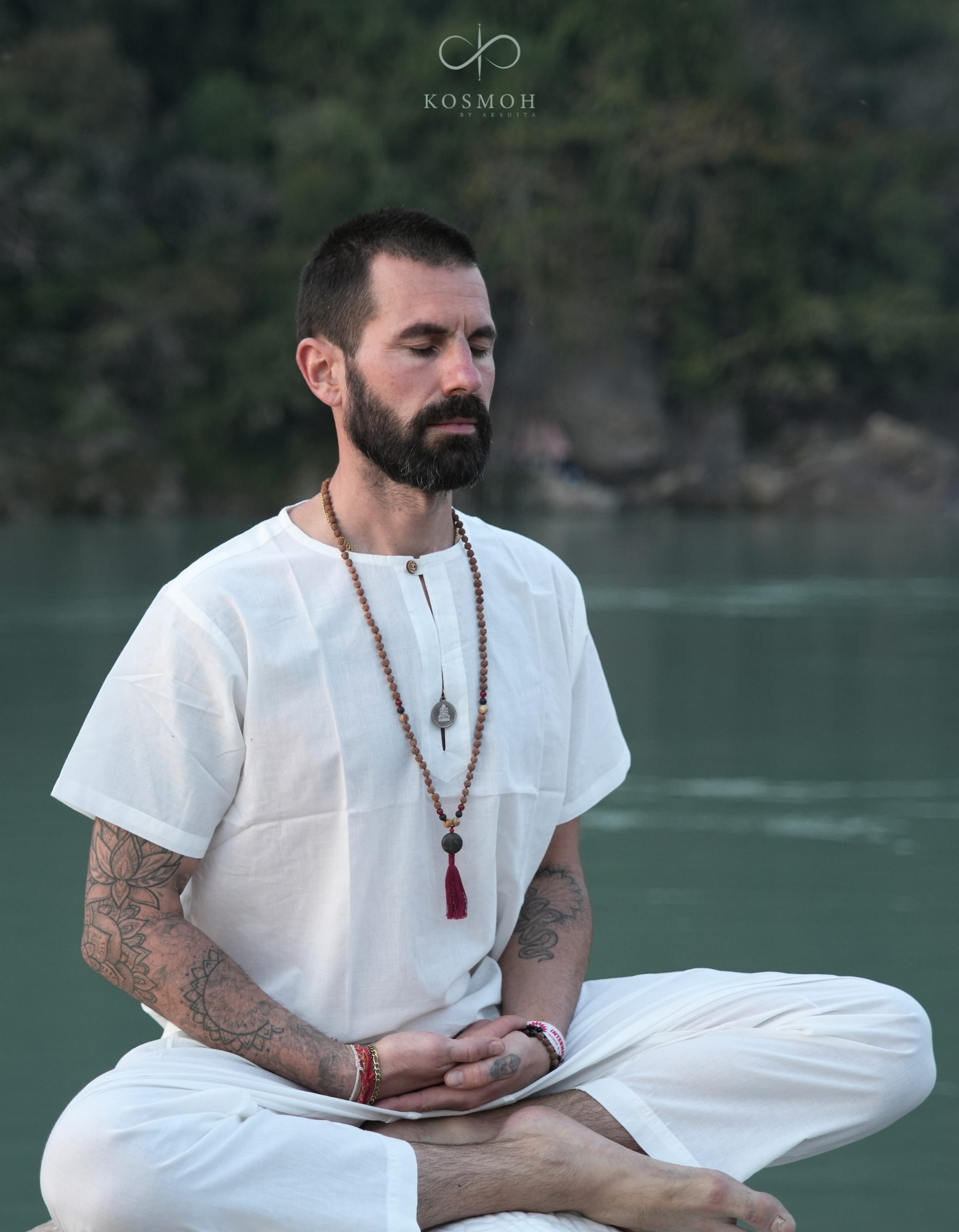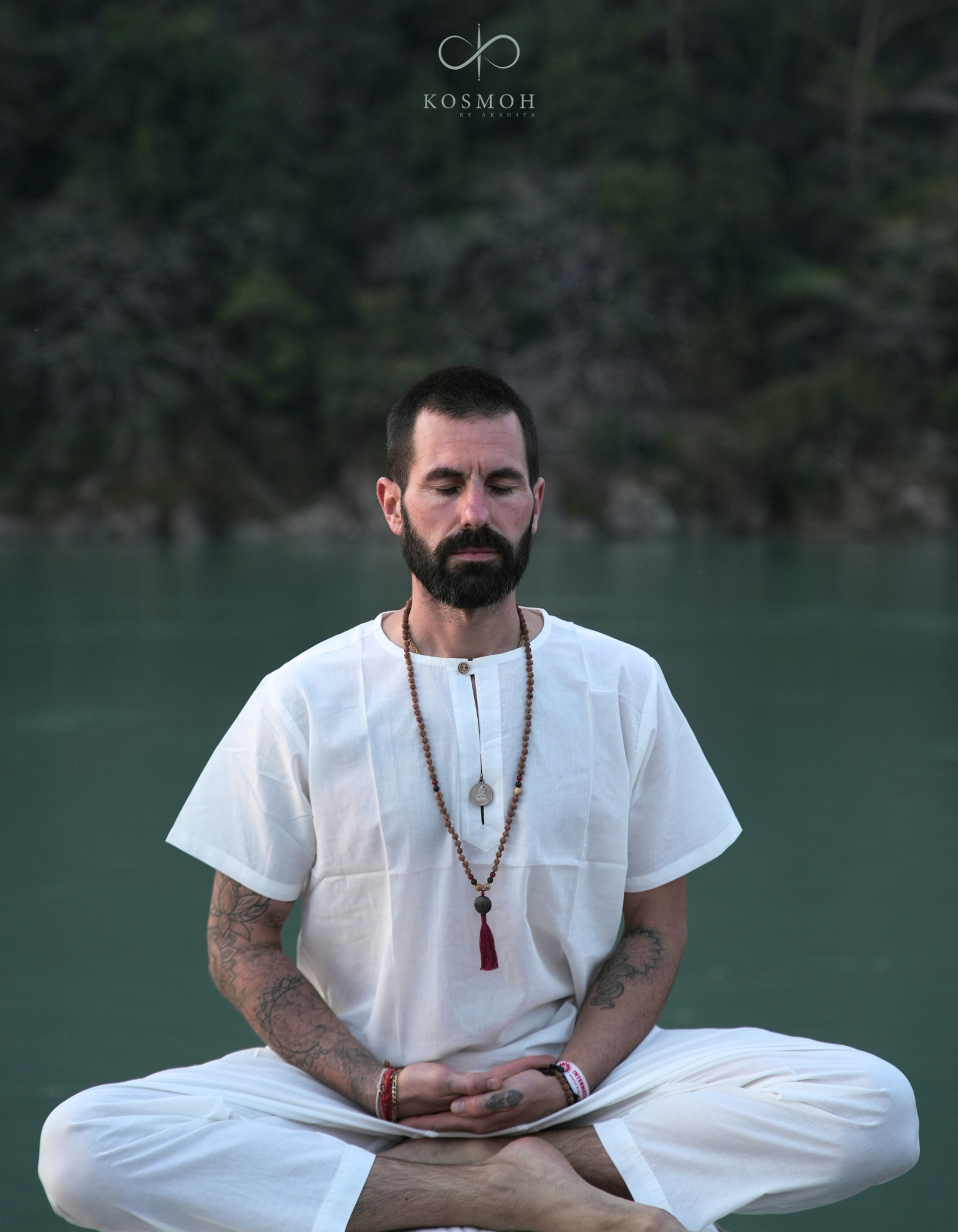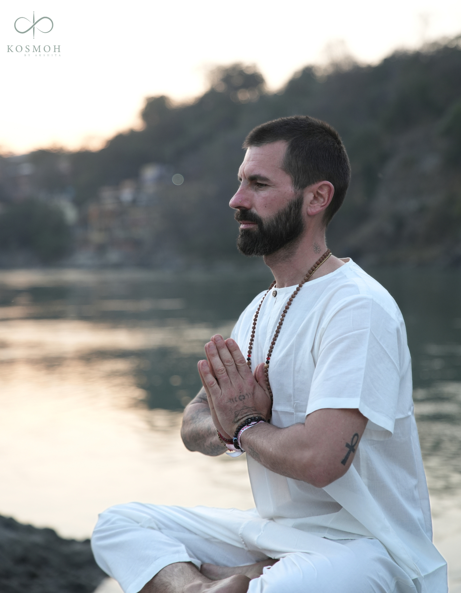 Kosmoh 100% Organic Mulmul Cotton Coord Set Unisex-Serene white (Keyhole neck design) ( Set of top & pants )