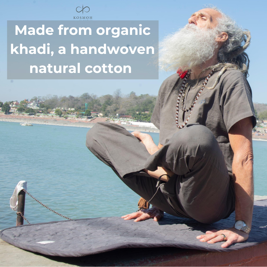 Organic Comfort: Immerse yourself in the luxurious touch of handwoven Khadi Cotton, offering a soft and supportive foundation for your practice.