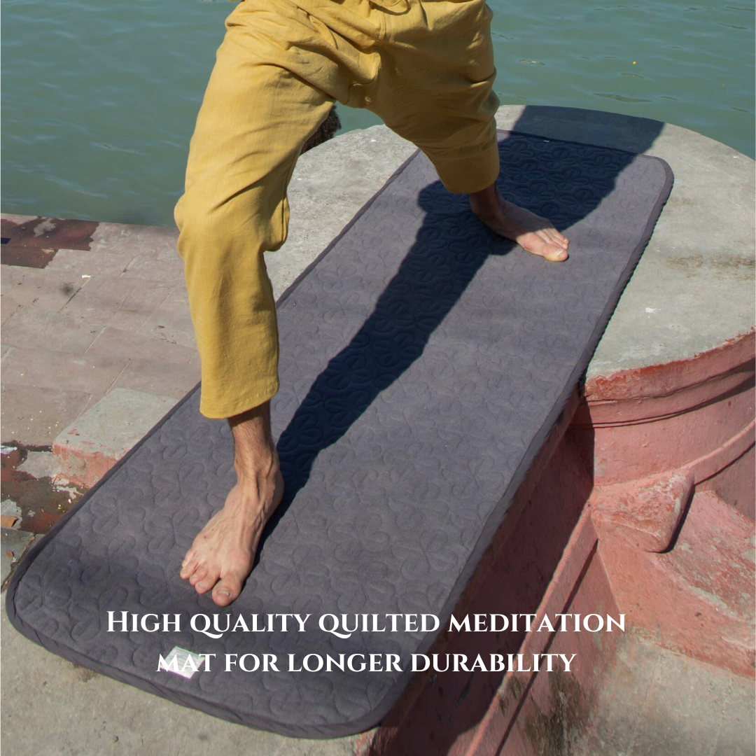 Kosmoh 'Kashish' herb-infused foldable Yoga & Meditation Mat - Moonlit Gray, 100% Organic Handspun & Handwoven Khadi Cotton Yoga Mat I Sustainable & Eco-friendly