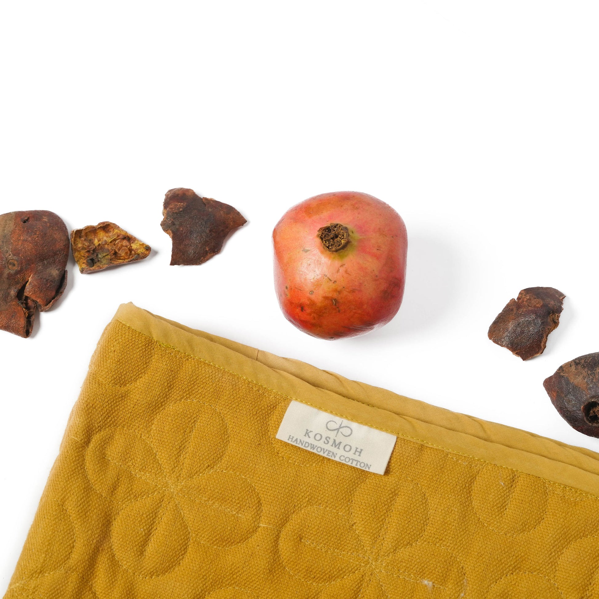 3. A Chromatic Elixir: Our Khadi fabrics aren't just dyed; they're immersed in the therapeutic embrace of real pomegranate and herbal dyes. Dive into a world where colors aren't just aesthetics but sources of well-being and healing. Real pomegranate natural dyeing, in a luscious amber yellow hue, brings not only a burst of color but also therapeutic properties. It's rich in tannin, making it light and wash-fast, a vegan, eco-friendly dye that's gentle on your skin. The soothing effects of pomegranate go beyond aesthetics; it treats insomnia, promoting a restful sleep.