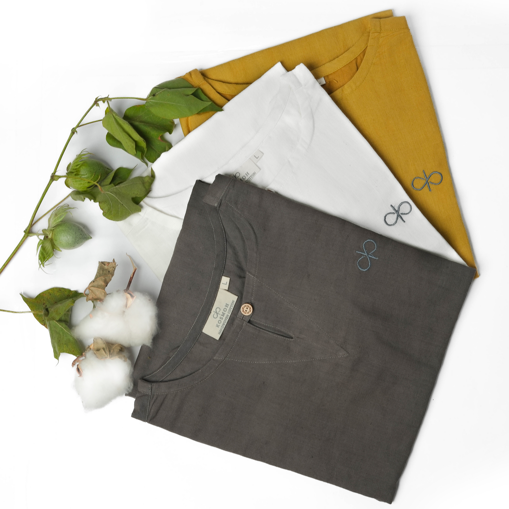 At Kosmoh, we invite you to embark on a journey beyond ordinary clothing. Unveil the enigmatic world of Khadi, where threads are spun with history, and fabrics whisper tales of nature's wisdom. Step into a realm of holistic comfort and unparalleled craftsmanship, where each piece is not just a garment but a masterpiece of mindful living.