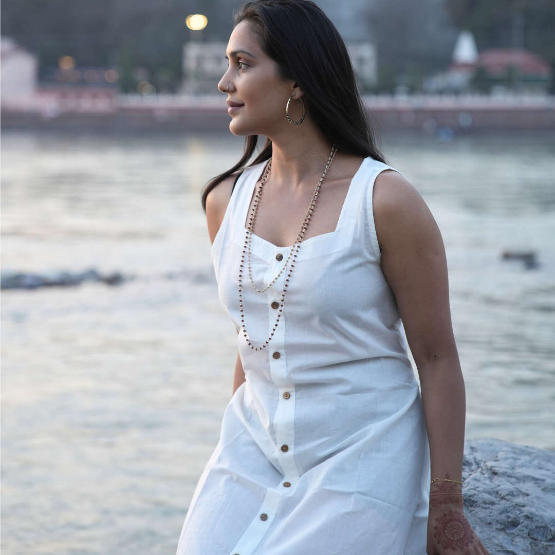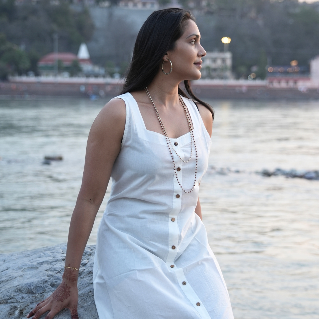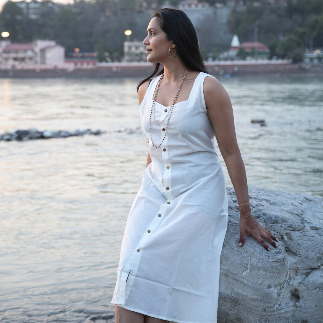 Elevate your wardrobe with KOSMOH's 100% Organic White Mulmul Cotton Tunics/Dresses, where elegance meets comfort in harmony with nature.