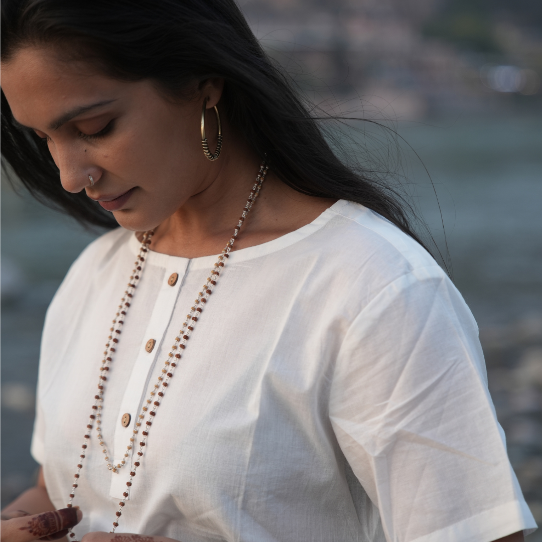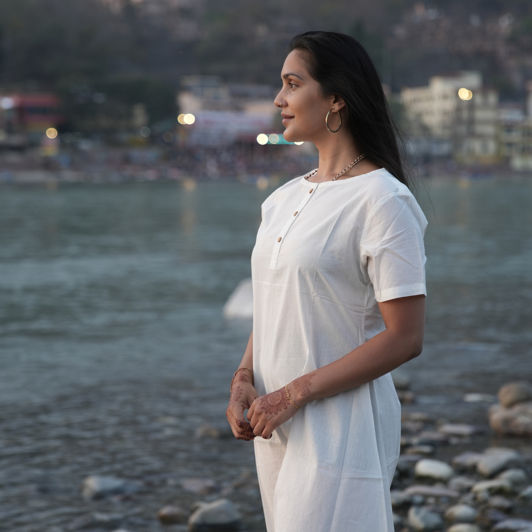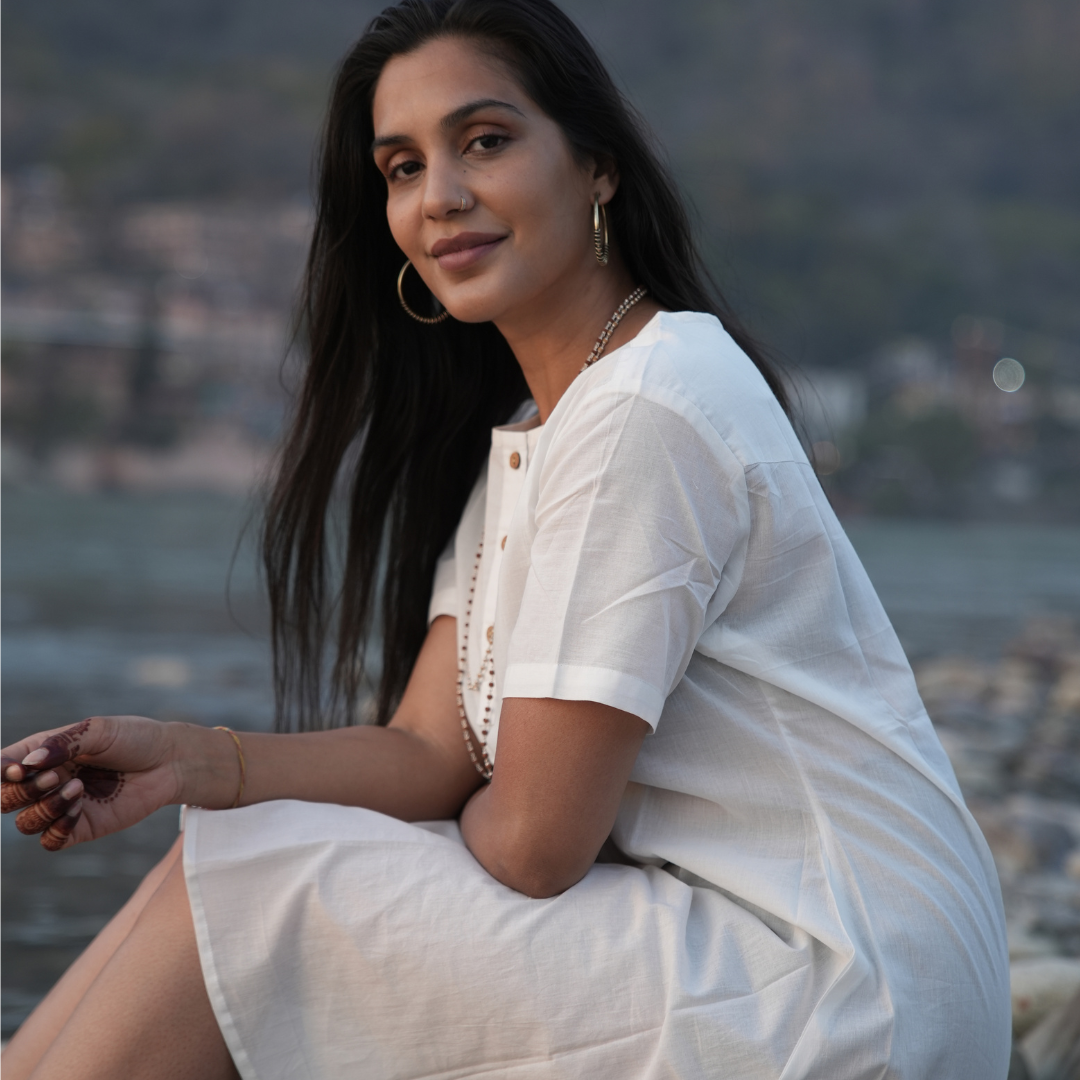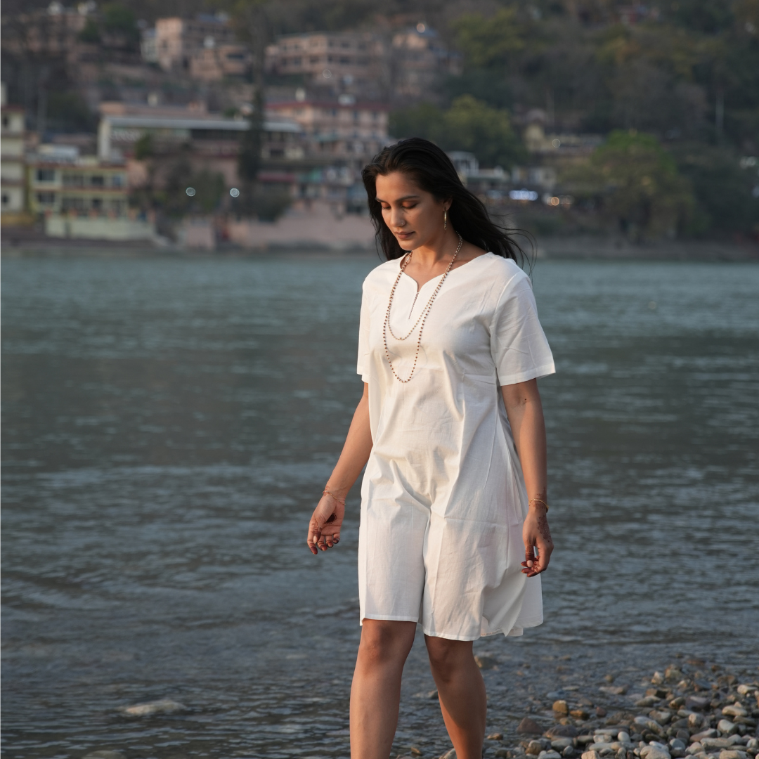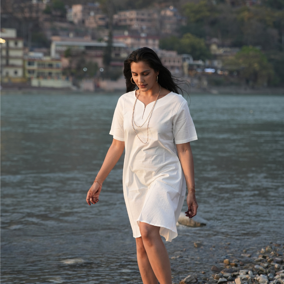Introducing KOSMOH's 100% Organic White Mulmul Cotton Tunics/Dresses, crafted for those who appreciate the elegance of simplicity and the purity of organic materials. These tunics come in four versatile styles, each designed to embody timeless grace and comfort.